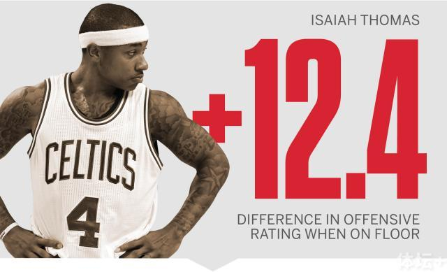 从这一点来看,小托马斯的发挥完全不逊于哈登和威少,因为缺少他的凯尔特人完全会沦落成一支乐透区球队。根据统计,当小托马斯在场的时候,绿军的进攻效率将提高12.4,即每百回合多得12.4分。或者换一个更加直观的说法吧,托马斯在场时,凯尔特人的进攻比52胜11负的勇士还要好,当他不在时,他们的进攻等于11胜51负的布鲁克林篮网。