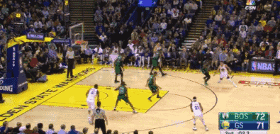 第三节末,库里拿球准备进行最后一攻,凯尔特人队探花杰伦-布朗贴身防守。库里连续变相以及一个后撤步,将布朗晃起后,库里一个侧身远投,皮球应着三节比赛结束的蜂鸣声入网。进球后的库里很兴奋,他用手对布朗指指点点,示意布朗“安静点儿”,嘴里还说着一些话。现场评论员说道:“库里应该在说,这球就是进给你看的,年轻人。”