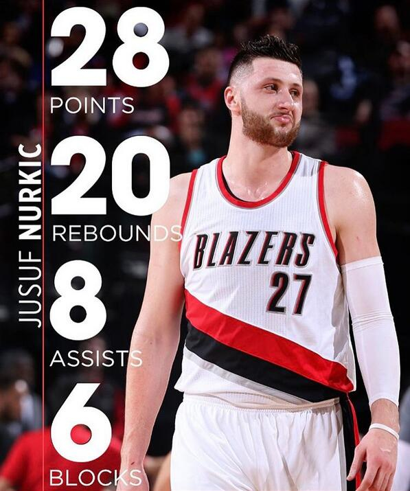 掘金把他送去波特兰,交易梅森-普拉姆里。来到开拓者后纽基奇自然而然的坐稳首发中锋位,并找到了自己真正的乐土。前7场比赛,场均15分8个篮板4个助攻1.3盖帽,然后,他爆发了。