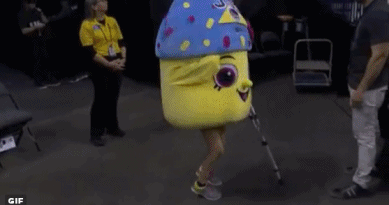 虽然杜兰特今天没有披挂上阵,但他还是难逃雷霆球迷的嘲讽。现场有一位雷霆球迷穿上了特制的杯子蛋糕外套,蛋糕外套的头上还印着勇士的队标以及35号,这显然指的是杜兰特。有趣的是,那位球迷还拄着一根拐杖,以模仿目前正在养伤的阿杜。而且从身形来看,这位雷蜜还是个妹子。