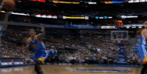 第三节他一次持球强突帕楚里亚,上篮得手后不慎和勇士中锋发生碰撞,还伤到了左肩。随后他又有一次持球到三分线附近,突然加速,一个箭步甩开防守者,上篮得手的精彩表演。