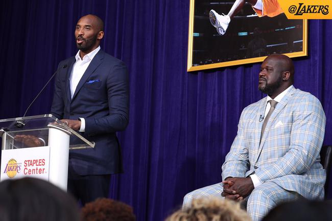 科比上台后对奥尼尔说道:“祝贺你,我非常爱你,兄弟。感谢你,我从你的身上学到了许多。”