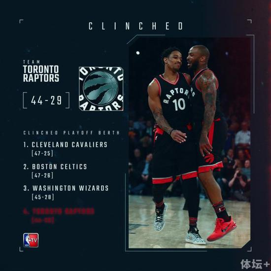 94比86战胜达拉斯小牛之后,多伦多猛龙确保自己已经打进了本赛季季后赛。对于已经连续4年进入季后赛的德马尔·德罗赞来说,这个“成就”早就是常便饭了,但是从全明星赛后才加入猛龙的P.J。塔克可还从来没有品尝过季后赛的滋味。