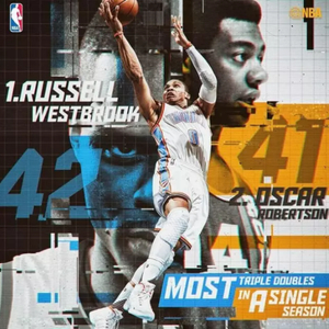 场均32分,已经是联盟顶尖的得分手了,这还不算完,在控球后卫这个位置上,威斯布鲁克还是联盟最强的篮板手。但说一千道一万,还是场均三双的数据最为闪耀。场均三双的数据记录尘封已久,上一次打出这样数据的人还是1961-62赛季的NBA传奇巨星奥斯卡-罗伯森,但那也过去55年了。本赛季,拉塞尔-威斯布鲁克终于成为了新的“三双先生”。