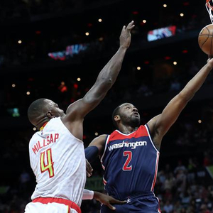 老鹰将差距缩小到7分后,沃尔连连得手,他一人包办比赛最后9分,锁定胜局。