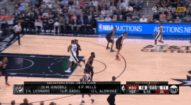 于是第二个办法来了,这也是今天马刺队的变招的根本目的,强行把进攻空间,给撑开。这是一条曲线救国的路子。