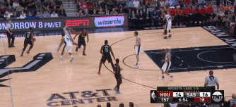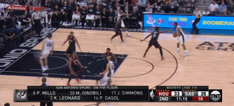 这是一个局部的三打三,这个球能打进的一个很重要的原因,就是火箭的内线并没有人死站在篮下,无论是被带过来的贝弗利还是安德森,都要兼顾身边的人,没有协防,三打三而不是三打四甚至三打五,对于马刺来说,就简单很多。