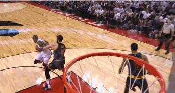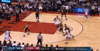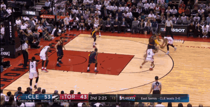 第二节进行了9分钟,猛龙队打出快攻反击,伊巴卡见势又是一个向内线的切入,他直接用身体倚住骑士队员凯尔-科沃尔,接到球后也是毫不犹豫直接利用自己的身高力量优势,勾手命中,打了科沃尔一个措手不及。