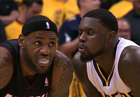 84年总决赛经典一幕,兰比斯被麦克海尔伸出的胳膊直接放翻,就像 撞上了一根 晾衣绳。