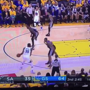 这是比赛进行到第二节还剩2分44秒左右,在勇士球星凯文-杜兰特一次跳投中,马刺球星拉马库斯-阿尔德里奇的脚在防守时向前踏了一步,直接垫在了杜兰特下落后的右脚上,虽然这一动作没有导致杜兰特受伤,但也同样引发了热议。