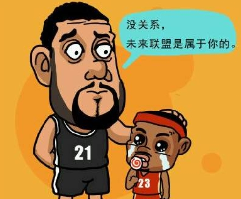 邓肯拍了拍詹姆斯的肩膀,语重心长的说:“别灰心,联盟的未来,是你的。”
