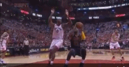 该节进行到10分03秒,詹姆斯秒传帮助JR表中三分球,把分差缩小到个位数。转回头他又成功断掉对手的传球,运球高速推进组织反击:面对洛瑞和卡罗尔的双人夹击,詹皇一往无前,果断直接攻筐,卡罗尔见势不妙,干脆双手搂住他的肩膀,想要犯规来阻止他的得分。这一球,被对方用自由搏击动作缠住的詹姆斯连跳都跳不起来,但他还是凭借出色的手感把球挑进篮筐,球进哨响,2+1,分差被缩小到6分。