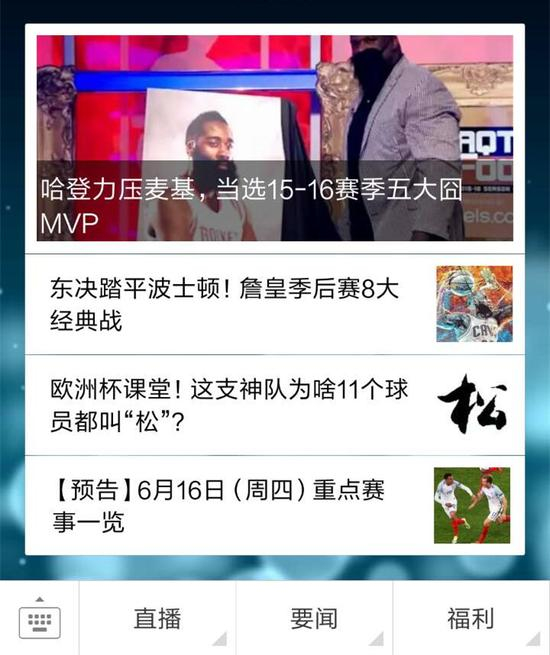 新浪体育微信公众号今日推送依然精彩不断:哈登力压麦基,当选15-16赛季五大囧MVP;欧洲杯课堂!这支神队为啥11个球员都叫“松”?更多精彩,尽在新浪体育微信公众号!