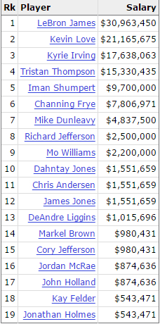 续约:勒布朗-詹姆斯(3年1亿美元),JR-史密斯(4年5700万),理查德-杰弗森(1年底薪)