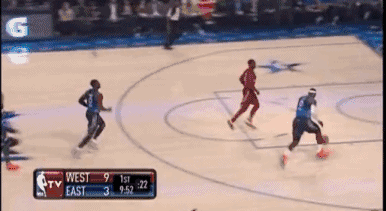 热火时期,詹姆斯在全明星赛中也有过几次漂亮的大风车扣篮。2012年奥兰多全明星,詹姆斯在开场没多久就在好基友保罗头上来了这么一次单臂大风车扣篮。