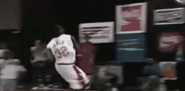 而年轻气盛的詹姆斯当然不会仅仅满足于最基本的大风车。看看这记双臂大风车+反手扣篮,詹姆斯在电光火石之间就将扣篮的创意打造得近乎完美。