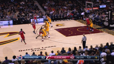 这是我最近对于卢指导布置最不能理解的一个地方,面对对手的主要投手(沃克&波特),在挂掩护和挡拆的时候,骑士的内线完完全全收在里面一点不出来延误就跟没看见一样,给了对手太多的投篮空间。