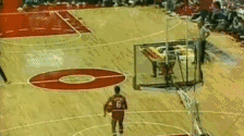 热身——定睛——起步——助跑——加速——飞身——滑翔——劈扣,欧文完成了NBA历史上第一记罚球线起跳扣篮,震惊世人。