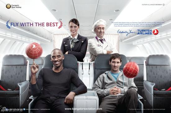 2010年12月3日,科比和土耳其航空签下2年代言合同。2012年9月双方曾续约,并和西甲巨星梅西共同拍摄代言广告。