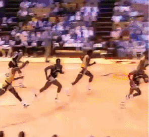 魔术师行进间脑后传球,不看人但能感觉到队友的存在