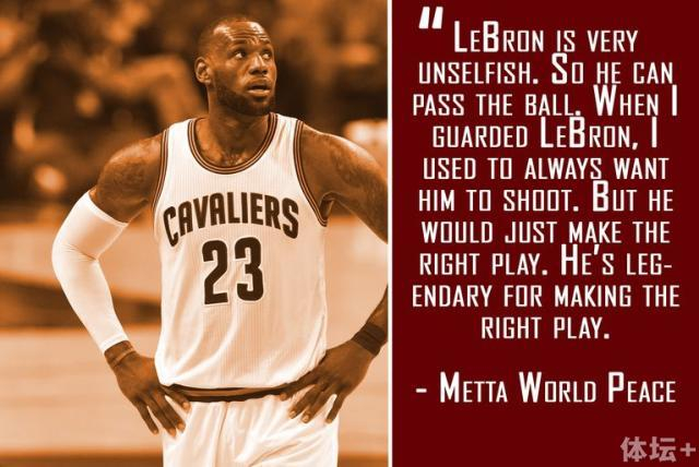“关于勒布朗最明显的特点,他是一个非常无私的球员,所以他能传球。我在防守勒布朗时,我总是希望他能出手投篮,但是他总能找到最合适的传球选择。”