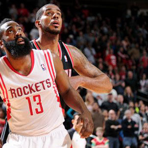 如果说NBA只有一支球队能让火箭充分发挥每一种特长,那正是开拓者队:一)霍华德的篮下进攻,四战平均25.5分13.7篮板;二)哈登的突破,四战平均得30.3分,罚球8.8次;三)攻守转换两个客场各得19分,两个主场各得18分。