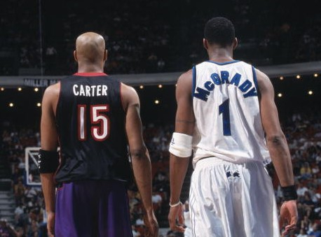 多伦多猛龙,95年成立后刚进入到NBA的猛龙队,最开始的几年,不温不火。旷大的主场球馆人烟稀渺,寥寥无几的观众伴着稀稀拉拉的叫喊。自然而然,猛龙队也成为了常年被排斥在季后赛大门之外的乐透区球队。98年选秀,守得云开见月明,北卡新星卡特,背上了自己的萨克斯和篮球,走进多伦多猛龙,而后逐渐入主多伦多航空中心。北卡出身、得分后卫、爆棚的天赋,你很难不把那个飞天入地的猛龙15号和传说中的公牛23号联系在一起。