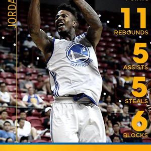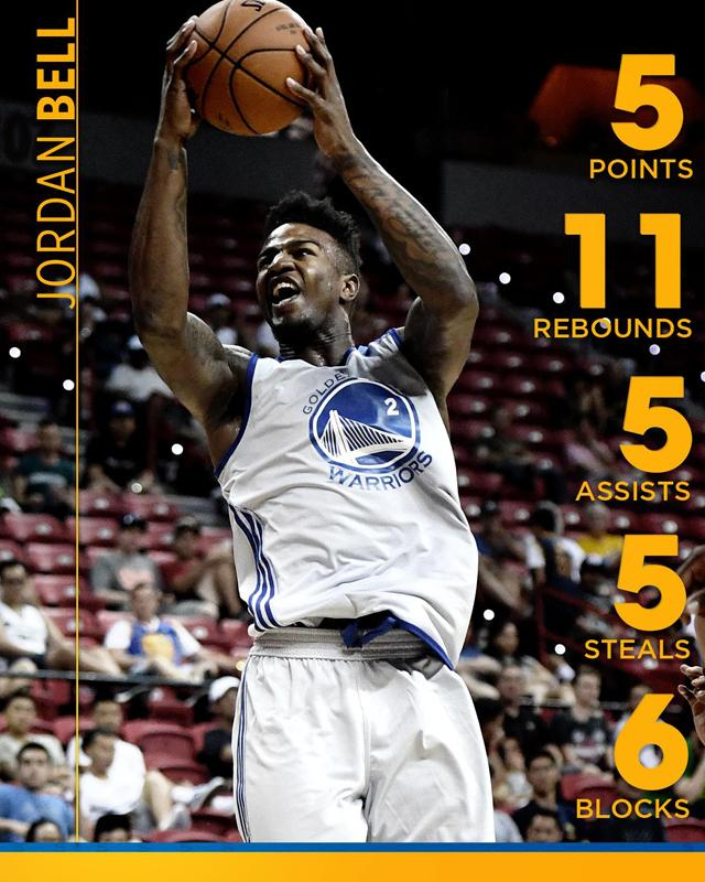 乔丹-贝尔打动勇士很重要的一点,是他在NCAA几场淘汰赛中的表现。而他的身形很容易让人想起同是矮壮派的德雷蒙德-格林。和森林狼的夏季联赛,贝尔直接打出了格林般的数据:5分11篮板5助攻5抢断6盖帽,正负值达到惊人的+29。