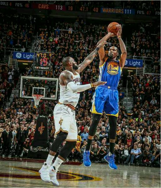 2017年6月8日,总决赛G3,第四节还剩53秒,詹姆斯在最后时刻突破分球科沃尔,库里转身绕过挡拆迅速干扰,皮球如命运般弹出,杜兰特高高跃起,收下这个至关重要的防守篮板。所有人都在往回走,杜兰特自己运球奔向前场,但是这个时刻,有些人的似乎看到了再熟悉不过的场景。