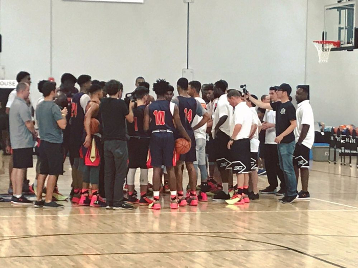 库里在场中央为各位有实力的年轻人们讲解了一些关于自己未来的一些准备,接下来几天,训练营的年轻人会分组进行对抗练习。