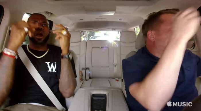 直播吧8月11日讯 骑士球星詹姆斯近日参与录制了英国脱口秀主持人詹姆斯-柯登(James Corden)主演的剧集《Carpool Karaoke(拼车卡拉OK)》。