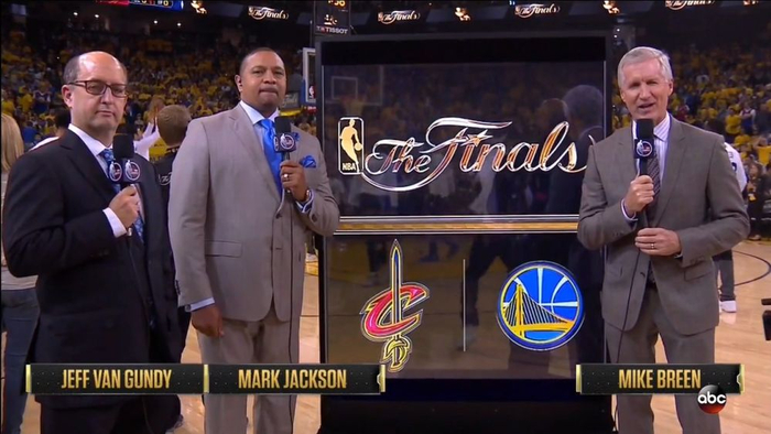 评论员杰夫-范甘迪(Jeff Van Gundy),ESPN评论员、火箭队前主教练,在比赛直播中经常抨击联盟规则的不合理之处,并且经常调戏场边女记者Doris Burke以及以上两位搭档。