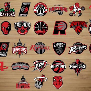 从图中可以看出所有的logo都含有猛龙元素,包括“Toronto”“Raptors”字样、黑红色调以及吉祥物。