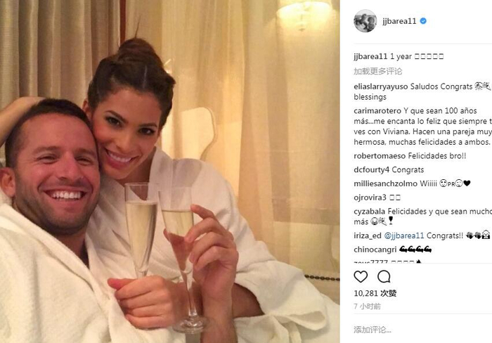 直播吧8月21日讯 今天是达拉斯小牛队控卫何塞-巴里亚和妻子Viviana Ortiz结婚一周年的日子,巴里亚今天在他的个人社交账号里晒了一张照片,上面是他们夫妻俩的合影。