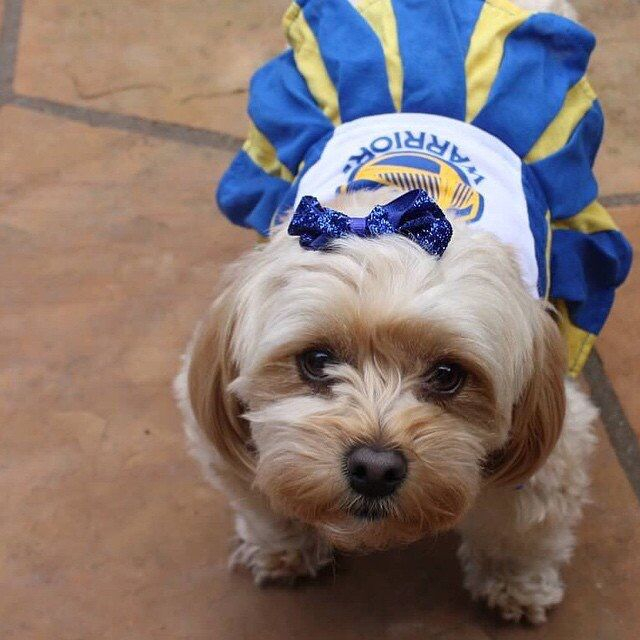 直播吧8月27日讯 美国当地时间今天是国际狗狗日,勇士官方也在推特上晒出四张图片来庆祝这个节日。