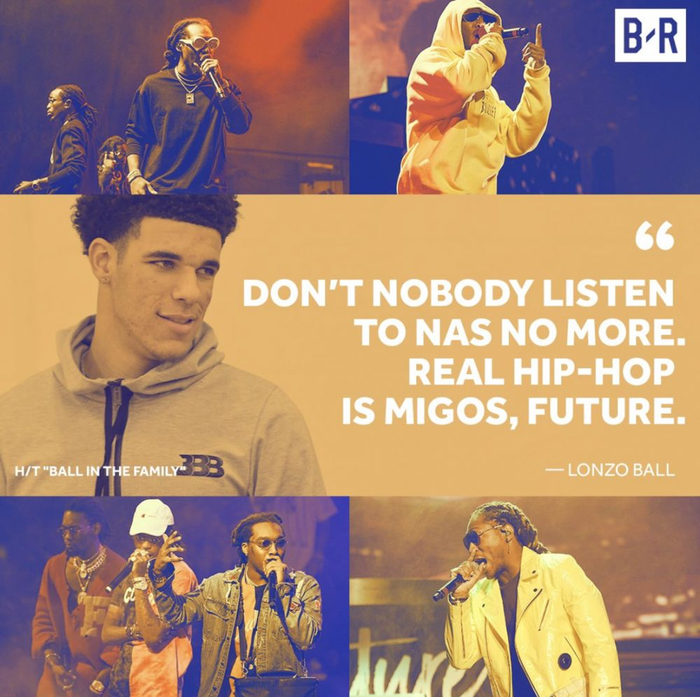 他发布了推文写道:“郎佐-鲍尔将要受到我对于他在湖人新秀赛季的诅咒,Nas是一个Hip Hop,并且永远都是,你们的团队要小心了!”