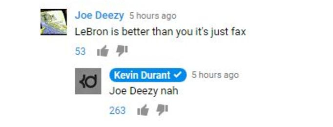 球迷称詹姆斯比杜兰特更出色 杜兰特回复:不