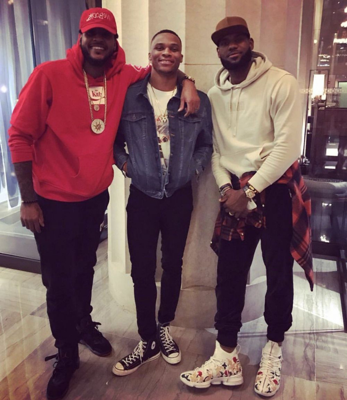 《SLAM》杂志晒连帽衫甜瓜和威少及詹姆斯合影
