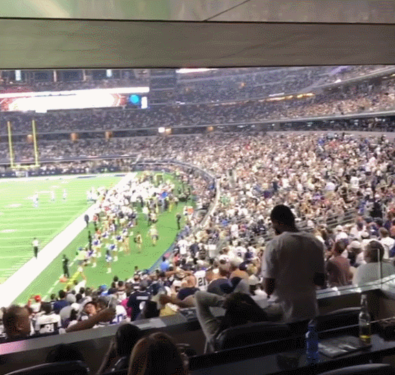 AT&T体育场是著名NFL球队达拉斯牛仔队的主场,与马刺主场AT&T中心球馆是不同的两座体育设施。本场对阵纽约巨人队的比赛是达拉斯牛仔队新赛季的第一场比赛。