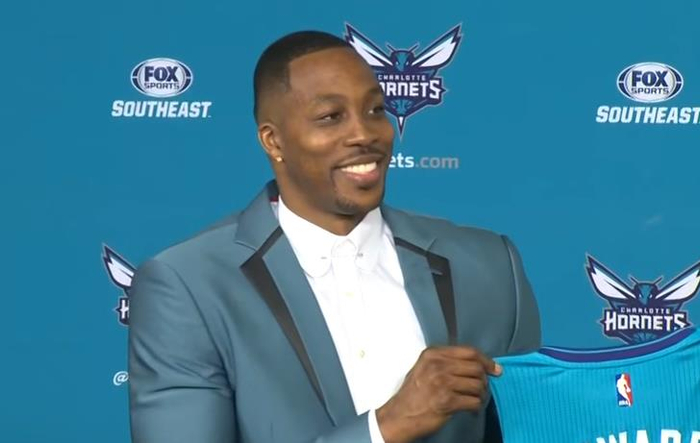 霍华德今年夏天被老鹰交易至黄蜂,上个赛季霍华德场均可以得到13.5分12.7篮板1.4助攻0.9抢断1.2盖帽。