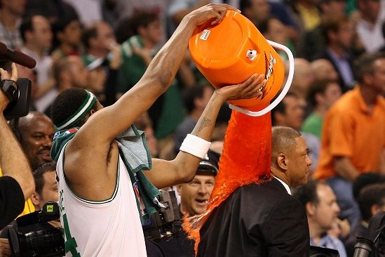 在NBA赛场上,佳得乐一直扮演着“联赛官方运动饮料”的角色,球员们在场边喝着佳得乐的场景成为了球迷们习以为常的画面,2007-08赛季凯尔特人夺冠时,皮尔斯将一大桶佳得乐饮料泼在时任总教练里弗斯身上的场景,也成为联赛中的经典一幕。