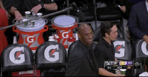 而湖人名宿科比布莱恩特一直都是以冷血杀手著称,他看到在自己的主场拉塞尔这样的庆祝动作时也是微微一笑。