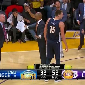 在昨天掘金对阵湖人的比赛进行至第二节,掘金球员约基奇和教练马龙被裁判直接驱逐出场。