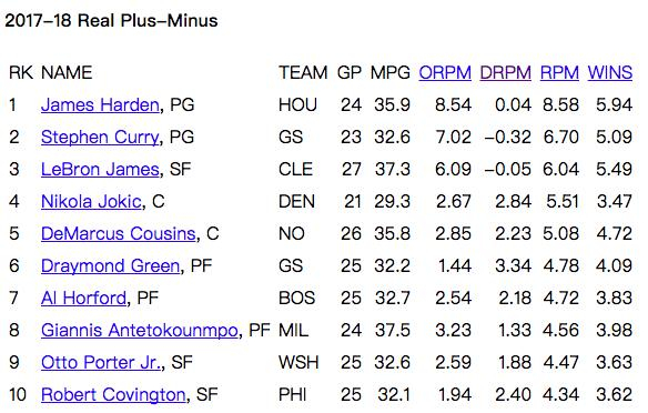 统计表正负值数据BPM是基于基础数据算出的结果[具体说来,BPM是通过预测球员的正则化修正正负值数据(RAPM,真实正负值的前身,没有引用任何基础数据),来评估球员在场时“对手数据(比如攻防篮板率)”的回归算法],所以在正负值系统中,各个基础数据的权重很好校准,不过在数据交互方面就很难控制,在BPM中,有一个防守篮板与助攻相乘的地方,所以在用BPM数据衡量威斯布鲁克的时候,难免会出现一些偏差。