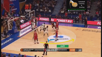 3号位和4号位一前一后为2号位做掩护(这种掩护叫梯次掩护),2号位摆脱防守后来到左侧高位接球。