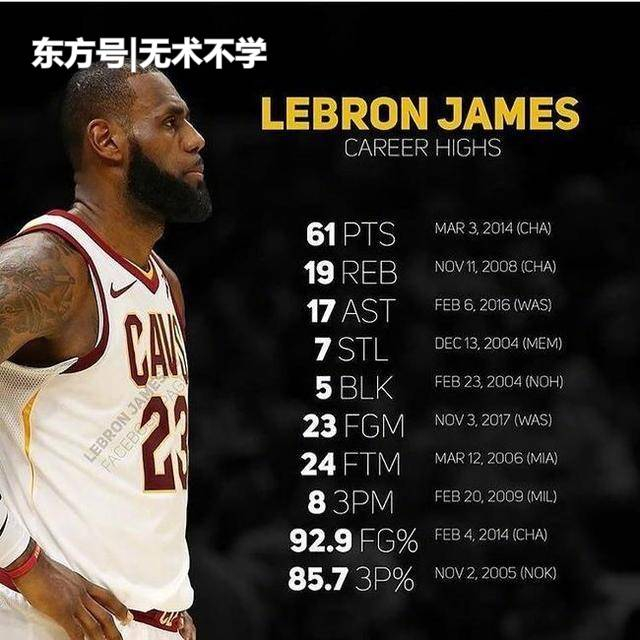 生涯单场之最:詹姆斯61分19板17助7断5帽,得分不如科比