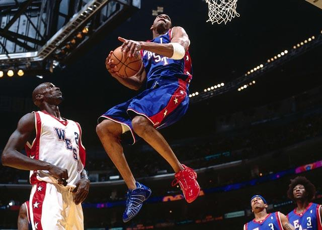 那是麦蒂的第二个得分王赛季,他的身体天赋和得分技巧都正处于最巅峰。比赛第三节,东部队成为麦蒂的个人秀。艾弗森和基德轮流给麦蒂做球,都让他轻松吃饼。