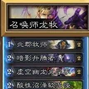肉块术实在组不起,抄的是双精控龙牧卡组,因为我没有萤根草,当时甚至连暮光幼龙都没有(然后合了两张),索性核心卡恶毒的召唤师还是有的。