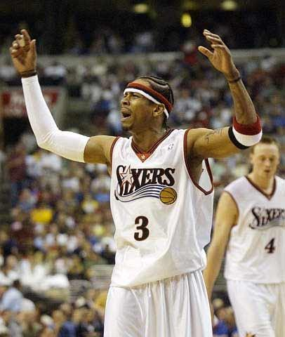 2002年4月22日,东部季后赛76人与凯尔特人队的首场较量,因左手掌骨断裂缺席了常规赛最后14场比赛的艾弗森上场征战。他首节成为场上的统治者,12分钟内6投4中得到15分。 但接下来艾弗森的表现却令人大惊失色,后三节比赛竟连续10投不中,仅仅靠罚篮得到5分,全场得到20分,76人客场以82比92输掉比赛