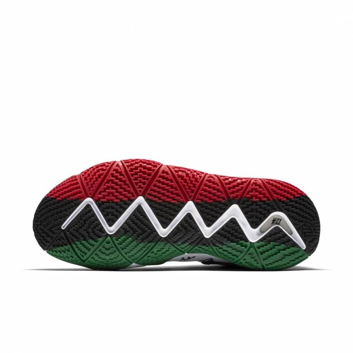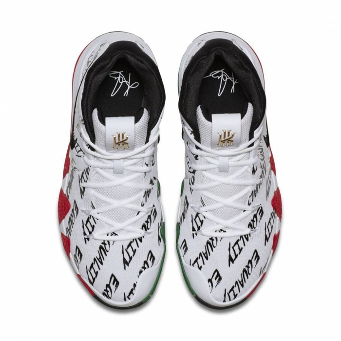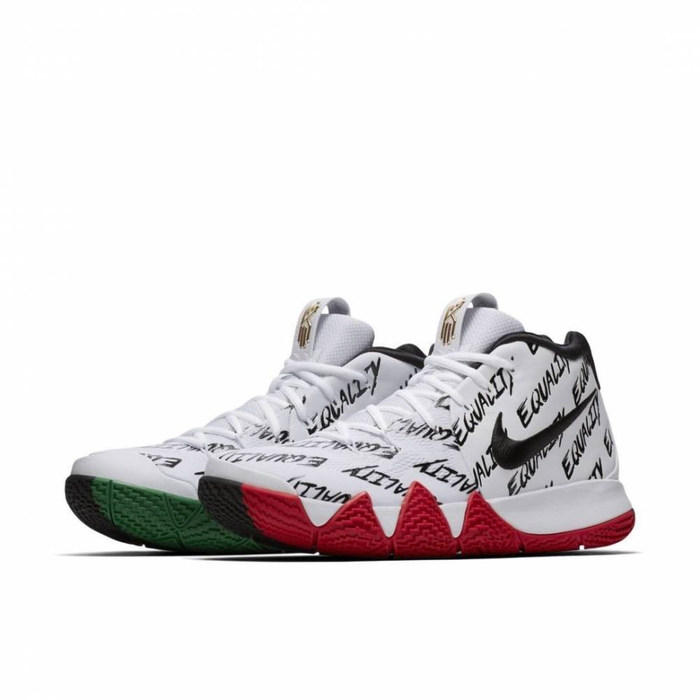 欧文四的“BHM”黑人历史月版本,白色皮质与透气网混合的鞋面上写满黑色“Equality”表达平等的字样,鞋底是泛非旗帜的红黑绿三色。